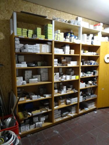 inhoud: voornamelijk deurbeslag exclusief metalen werkbank, (alles moet mee)