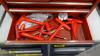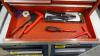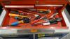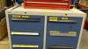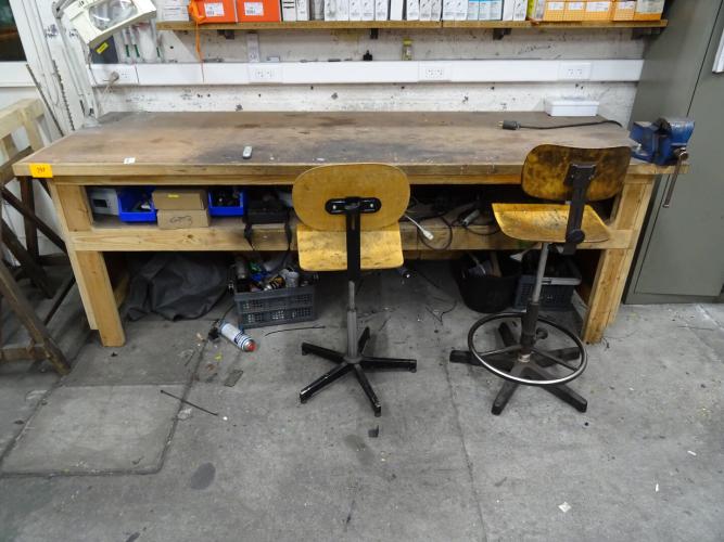 Houten werkbank + metalen ladekast en metalen gereedschapskoffer