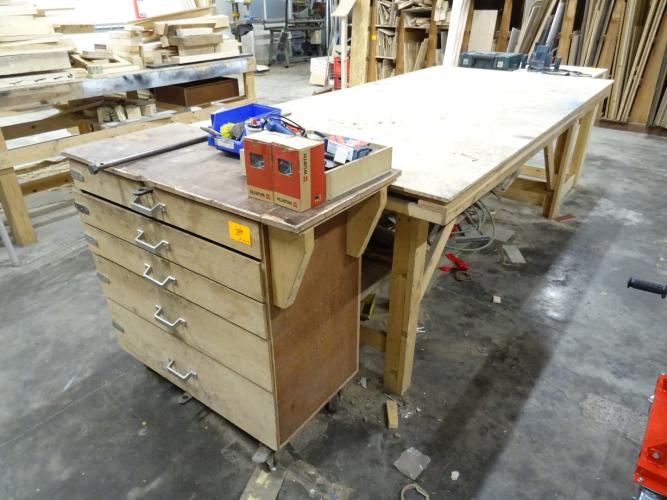 2x Houten werkbank + kar