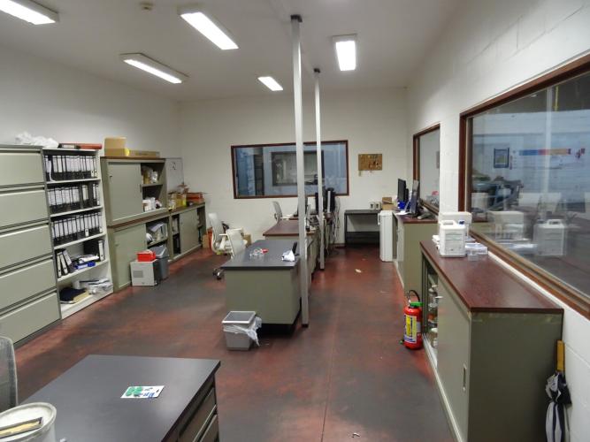 metalen kasten, metalen bureaus, stoelen, schermen, ... (alles moet mee)