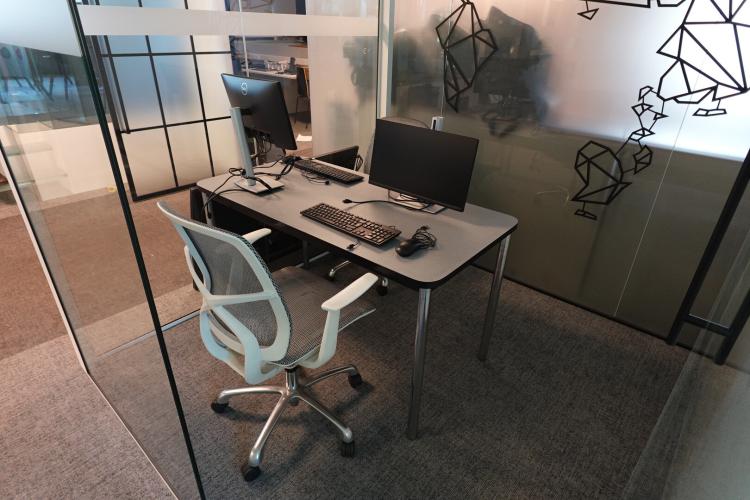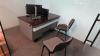 Metalen bureautafel met stoel en bureaustoel 1500x800x780 mm met PC + scherm + toetsenbord + muis, tafel 1400x700x760 mm met 2x bureaustoel, 2x scherm + 2x toetsenbord + x muis +++ alles moet mee