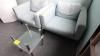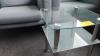 2x rechthoekige zetel blauwe stof met rechthoekige glazen tafel