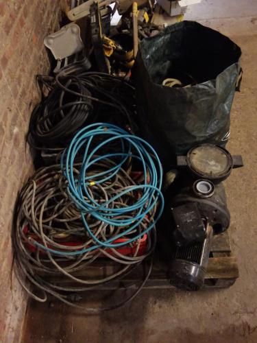 oa: schroefboormachine, kabels, emmers, werkbak, haagschaar...