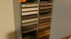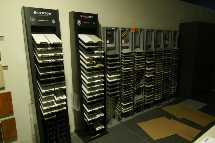 Presentatie rekken of trolleys en grijs houten presentatiekastje + stalen - 9 stuks