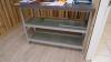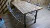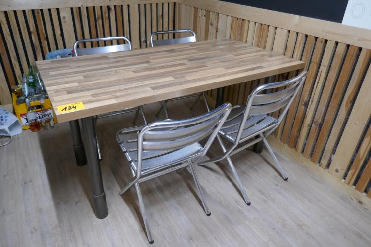 Keukentafel met houten bovenblad + 4 metalen stoelen + metalen wandtafel met bodemschap