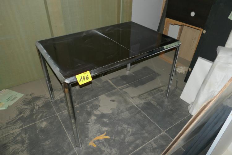 Vintage metalen tafel met zwartglazen blad - afmeting : L120xB80 cm