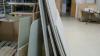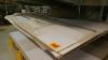 Houten bok met volle en resten van meubelplaten, diverse kleuren + inhoud rek : volle en resten van meubelplaten
