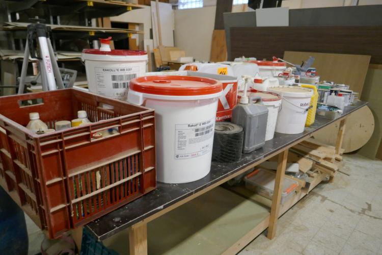 Allerhande diverse produkten : verf - kunststof cleaner - verdunner reiniger - houtlijm - enz…