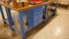 Blauwmetalen werkbank met 3 schuifladen en bodemschap