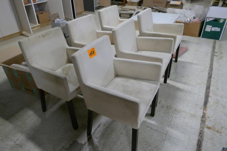 6 houten eetkamerstoelen met stoffen bekleding + mobiele tafel