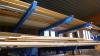 Blauwmetalen draagarmrek bestaande uit 3 staanders en 9 liggers