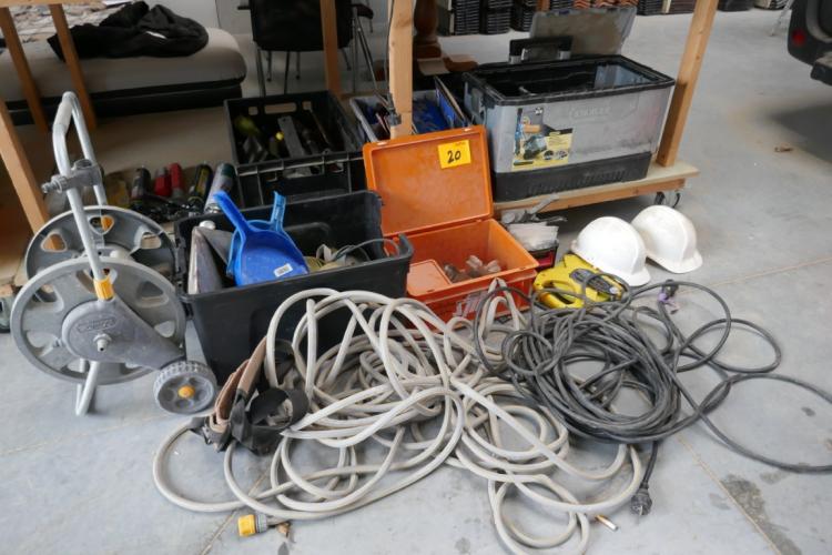 Werkgereedschap : waterslang met haspel - veiligheidshelmen - rolmeter - spuitkitten - handzaag - zuignap - enz….( zie fotos )