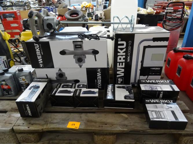 oa, accu's, haakse slijper, werfverlichting, 2x staafmixer, ...