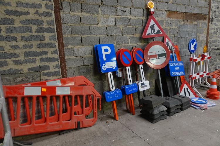vv: 12x voetstukken, 3 herashekken, 12 signalisatieborden...
