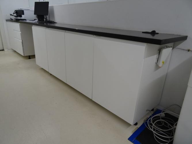 vv composiet blad, eiland (4500x1250x950), wandkasten (2450/4500x640x950) en houten kast (4800x600x2500)locatie:zone lift
