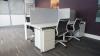 Bestaande uit 4x verrijdbare stoel, 4x ladenkast, akoestisch scherm en bureau (totale afm: 2,4m x 1,25m) per opstelling , locatie: gate 39