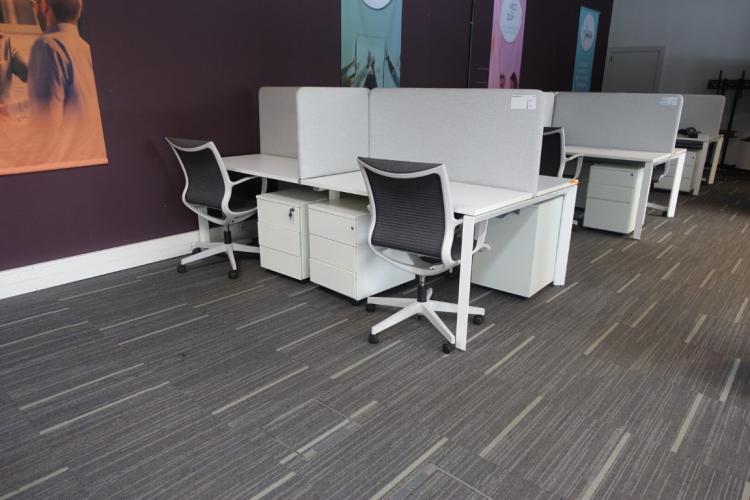 Bestaande uit 4x verrijdbare stoel, 4x ladenkast, akoestisch scherm en bureau (totale afm: 2,4m x 1,25m) per opstelling , locatie: gate 39