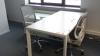 vergadertafel: 1600x1600, 8x stoel, samen met bureau l: 1600 , locatie: gate 39