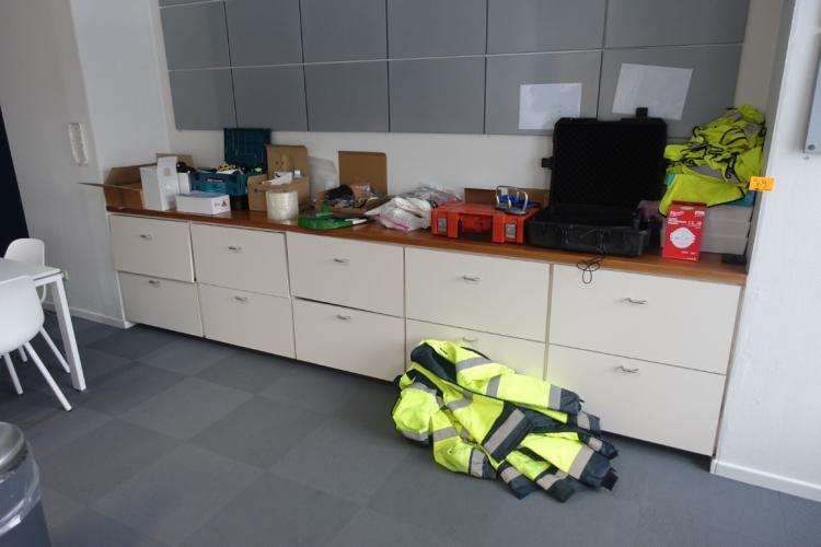 oa: lege werkkoffers, testmodule, Tivek pakken, werkkledij,... , locatie: gate 39