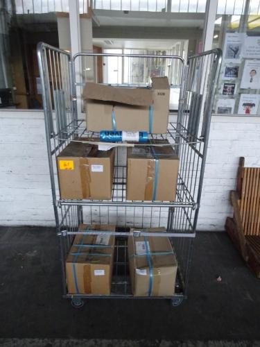 Verrijdbare metalen kar met inhoud