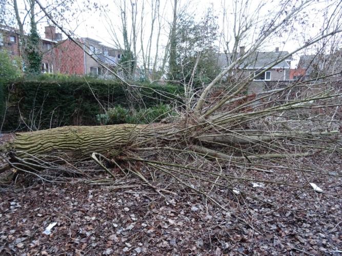 1x omgevallen boom incl. rechtopstaande stam, zelf te verzagen , locatie: parking