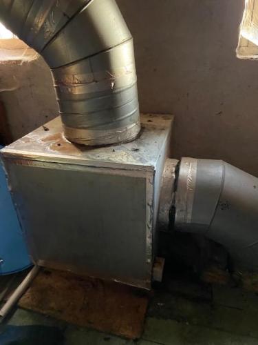 Dampkap, werkend, te demonteren, motor op zolder inbegrepen, 1m60x2m40, hoogte 82 cm. Elektriciteit te zekeren.