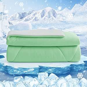 48x Ongeopend, HOMFINE Kühldecke Doppelseitig Kühlende Decke - Leichte Kühldecke für Menschen Q-Max > 0,4 Sommerdecke Kühlend Selbstkühlende Decke Sommer Decke Cooling Blanket für Bett, Grün, 200 x 220 cm B0DJ76DRB7