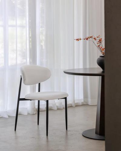 4 stuks eetkamerstoel met witte stoffen afwerking en stalen ondersteln ongeopende verpakkingn afmetingen zie foto
