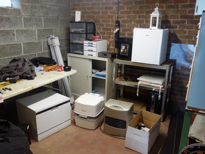 oa: vaatwasser, koffiemachine, koelkast , radio, mobiele wc , verwaming , dossierskast, diverse kasten , bloempotten , rek , .... ALLES MOET MEEGENOMEN WORDEN!!