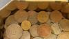 Vintage metalen doos met diverse munten