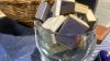 Ijsemmer + mand met diverse vintage gevulde luciferdoosjes