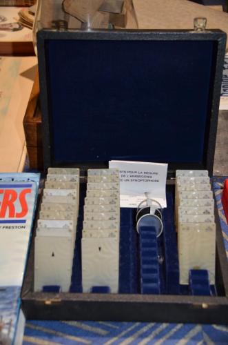 Koffertje diverse antieke optometrie glaasjes