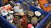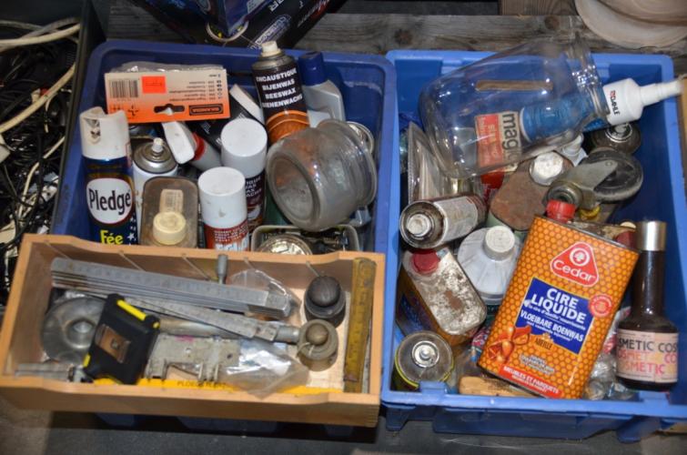2x blauwe bak met diverse producten