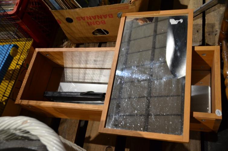 Houten spiegelkastje met verschuifbare spiegel