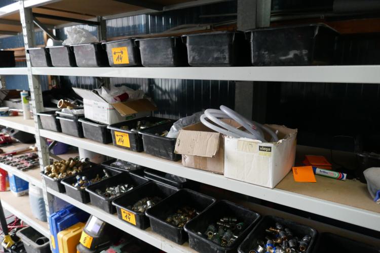 Plastieken bakken met allerhande koppelstukken - ongveer 20 bakken ( zie fotos )