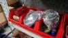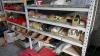 Magazijnrek met inhoud : rangeerbakjes met koppelstukken, beugels, bevestigingsmateriaal enz….