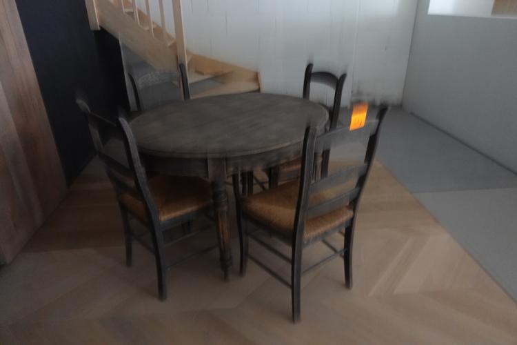 Houten ovalen tafel + 4 stoelen