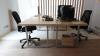 2x bureautafel (l:1800), 2x verrijdbare bureaustoel, 6x stoel, tafel (l:1200), 2x bureaukasten met diversen