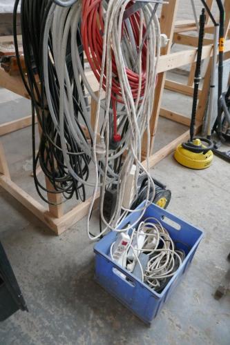 Reeks diverse elektrische verlengkabels en verdeeldozen