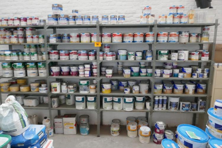 Rek Met Diverse Gebruikte Potten Verf En Primers