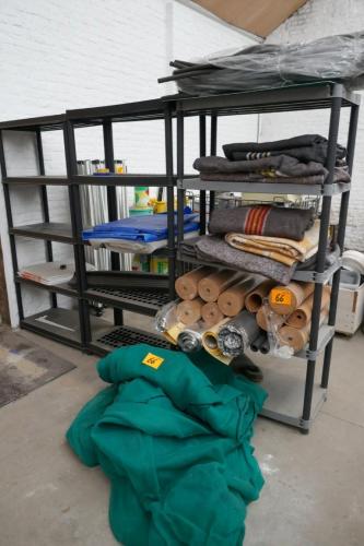 3 opbergrekken + inhoud : rollen kurk - beschermingsdekens - afdekzeilen - afdeknetten