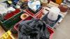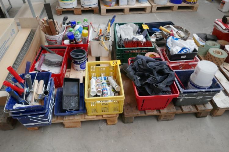 Bak met tubes silicones - verfbakken met verfrollen - spuitkitten - stukadoormateriaal - enz…