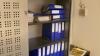 2 metalen bureelkasten met schuifdeuren