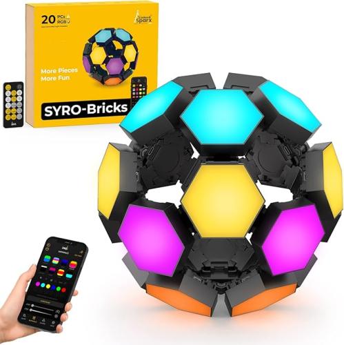 Ongeopend, ok, LinkedSparx Syro-Bricks 3D zeshoekige verlichting, Smart App Control RGB zeshoek LED-verlichting voor muur of desktop met muzieksynchronisatie voor gaming kamer streaming decor (20 stuks), B0BNBBGGCK