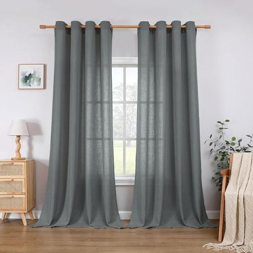 Ongebruikt, ok, CUCRAF Linnen gordijnen met oogjes, landhuisstijl, voile gordijn, half-transparante gordijnen voor slaapkamer, kinderkamer, woonkamer, H 260 x B 140 cm, set van 2, grijs,B0BVFHX996