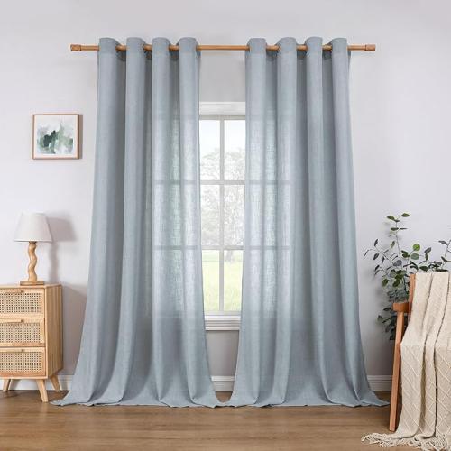 Ongeopend, ok, CUCRAF Linnen gordijnen met oogjes half transparant linnen gordijn voile raamsjaal Dekosjaal voor slaapkamer kinderkamer woonkamer, H 260 x B 140cm, set van 2, grijs blauw,B0CLRPGHZR