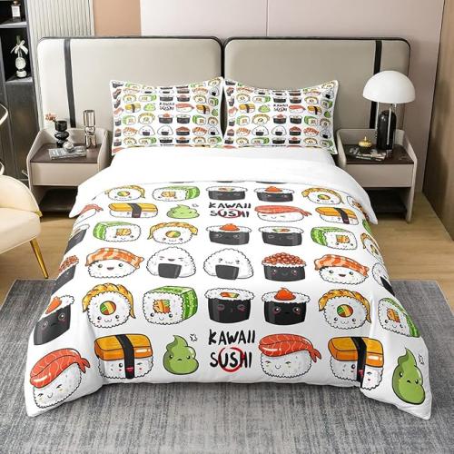 Ongeopend, in seal, Homewish Dekbedovertrek (200 x 200 cm), Sushi 100% Katoen, Kawaii Zeedier Beddengoed Sushi-patroon, Japanse Stijl Dekbedovertrek, Slaapkamer Decoratie, Zacht, B0CMTS44CY