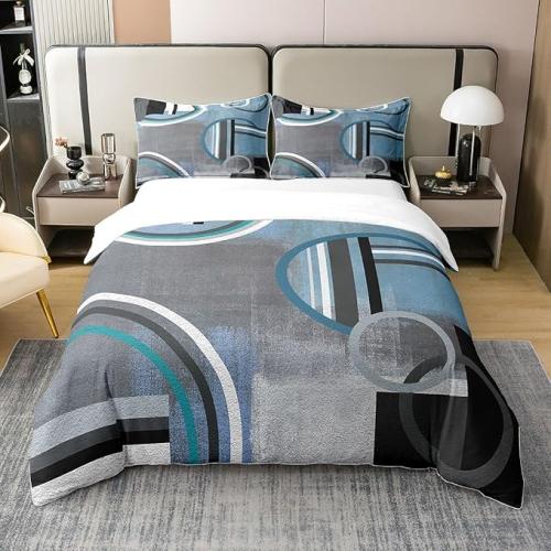 Ongeopend, in seal, Homewish Blauw, Zwart en Grijs Dekbedovertrek, 200x200 Kind Beddengoed Set 100% Katoen Omber Aquarel Geometrie Geometrie, Geometrische Gestreepte Beddengoed Set, Olieverfschilderij Bedovertrek, B0CLTZZB4M