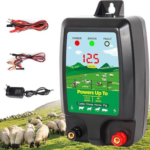 Gebruikssporen, getest en werkend, volledig, ok, Warmfay Afrasteringsapparaat 12 V met led-display, elektrische herdershond 2J output voor 10 km bereik, waterdicht elektrisch hek voor bescherming van boerderijen, huisdieren, gevogelte, weide, tuinen, B0DSVSZ1KM