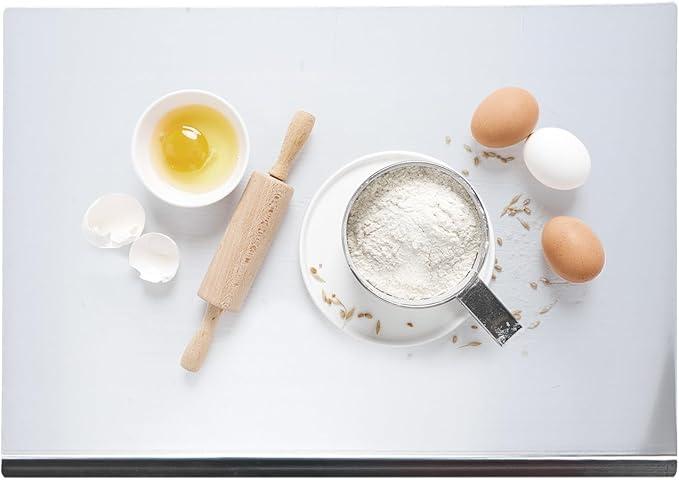 Gebruikssporen, ok, Keukenwerkblad van roestvrij staal, 70 x 50 cm, grote kneedplank van roestvrij staal, professionele plaat van roestvrij staal, snijplank, pizzaplaat, pastaplaat, pastaplank voor keuken, bar, B0D3PLVGX4